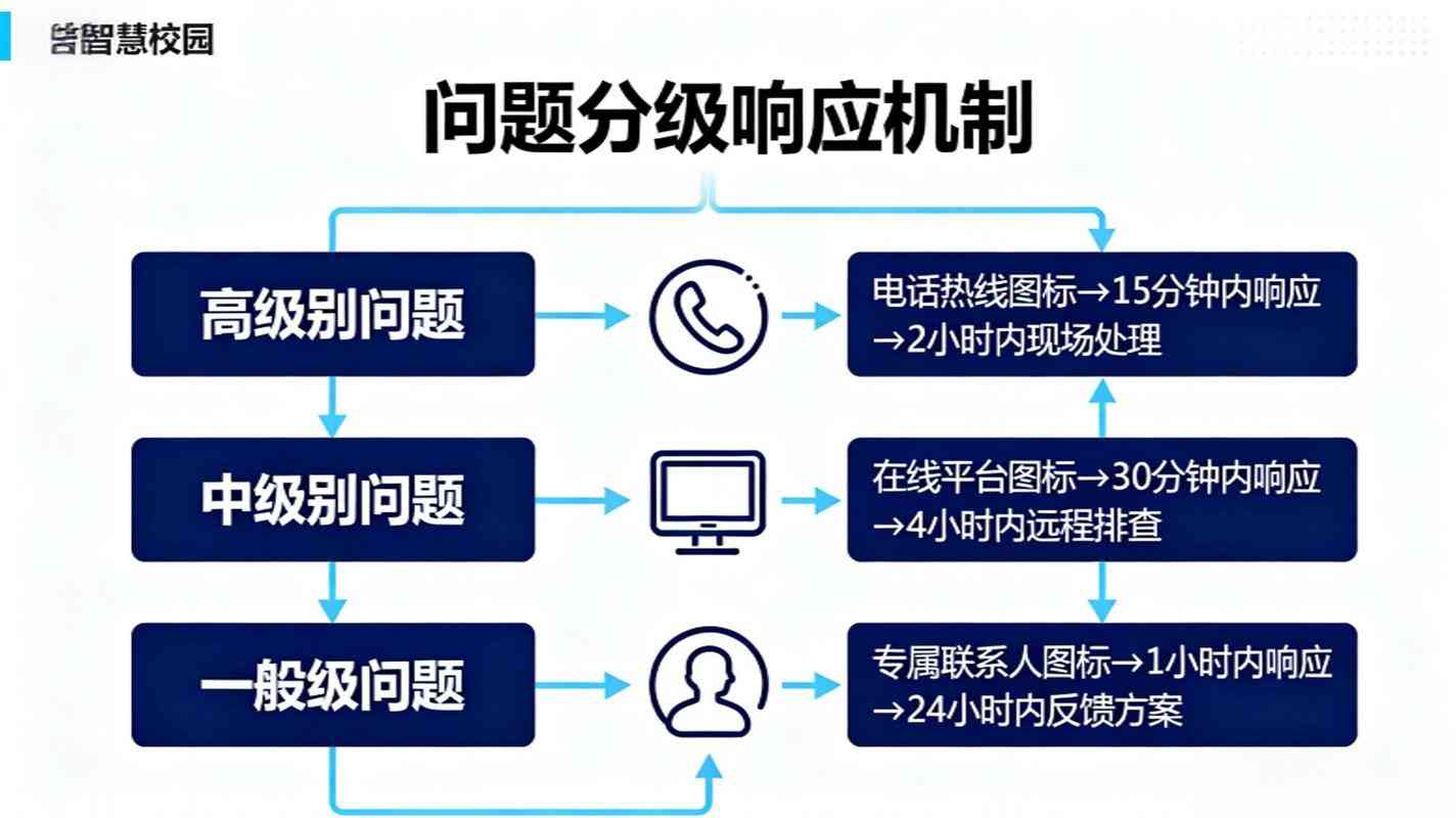 核心价值:服务协议条款中对响应时效的分级约定,既是技术服务承诺的量化体现,也是维护校园教学管理连续性的制度保障。