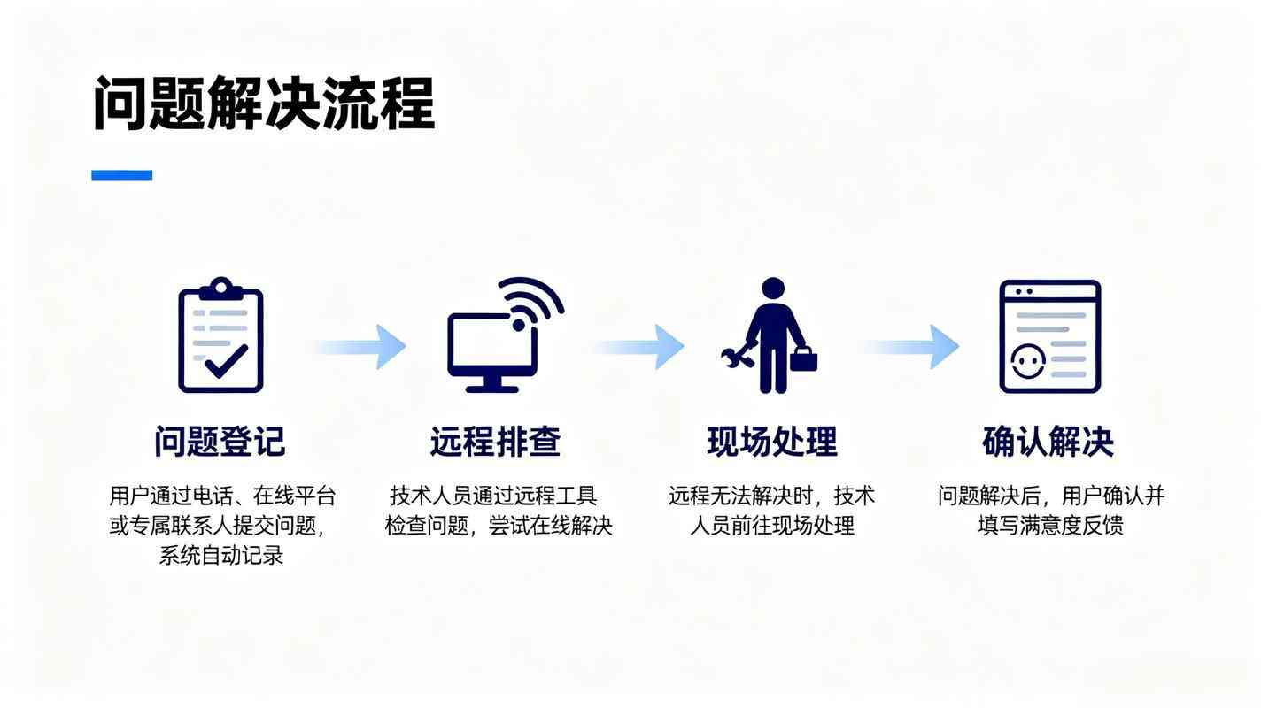 学校老师报修后,整个过程是这样的:先把问题登记清楚,技术人员会先远程排查,比如通过电话指导操作或在线查看设备状态;如果远程解决不了,就会安排工程师到学校现场处理。每个步骤都有明确的时间和操作要求,这样就能确保响应解决的每个环节都紧密衔接,不会出现脱节情况。